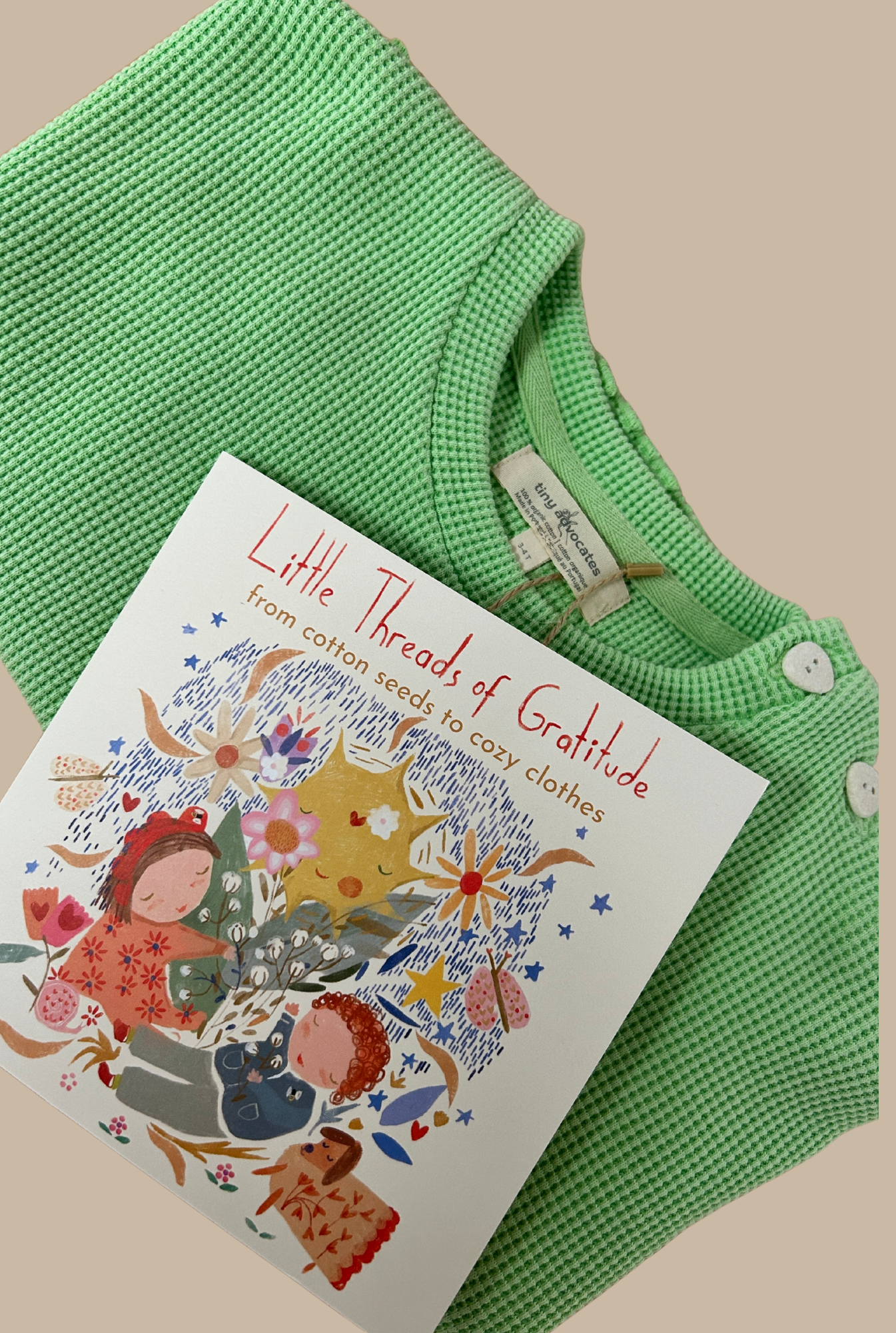 This top comes with a beautifully illustrated booklet that shares the journey of how it was made - from cotton seeds to comfy top.